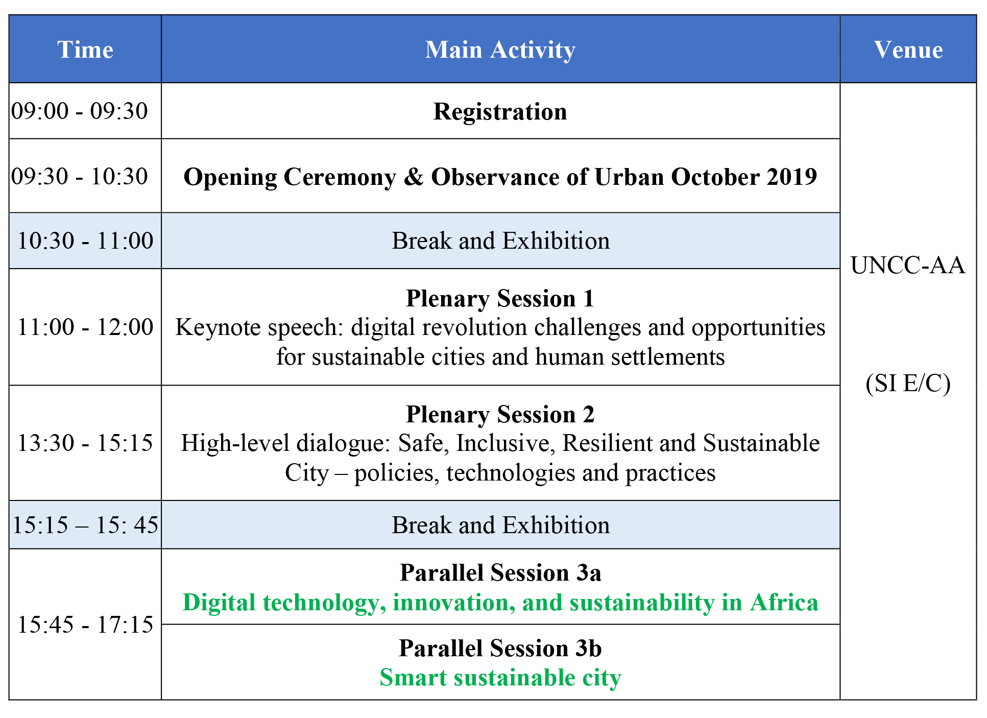 Venue: The United Nations Conference Center in Addis Ababa (UNCC-AA)